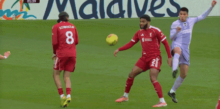 此戰利物浦在安菲爾德帶球入場,上半場第1分鐘,埃基蒂克就幫助球隊打破場上平衡,布萊頓球員后場大腳解圍,殺到前場的喬戈麥斯頭球助攻,將球給了禁區內的埃基蒂克,后者迎球怒射,幫助利物浦取得了1-0的夢幻開局,第14分鐘布萊頓打穿利物浦后防,迭戈戈麥斯近在咫尺的打門,被阿利森神撲化解。